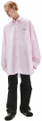 Оверсайз-рубашка из хлопка нежно-розового цвета, характерного для Raf Simons. Удлиненный объемный силуэт. Карман на груди. Вышивка с ключевым словом коллекции, Synchronicity, спереди, и вышивка с монограммой на воротничке. Сочетайте с джинсами и брюками Raf Simons. Данная модель также доступна в черном цвете.