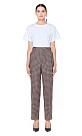 Брюки из шерсти в оранжево-зеленую клетку виши — узор родом из одноименного региона Франции, отличающуются резкой контрастностью. Имеют высокую посадку, широкие брючины с острыми стрелками, боковые карманы.