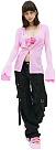 Розовый кардиган Blumarine на трех пуговицах, дополненный топом. Топ декорирован деталью в форме розы. Манжеты кардигана расширенны и подчеркнуты узорчатой линией, на спине вышит логотип.