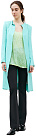 Легкий плащ сшит из шелка бирюзового цвета. Модель слегка приталенного кроя со складками на спинке. Застежка на потайной крючок на вороте.