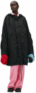 Черная водонепроницаемая парка оверсайз силуэта. На спине — фиолетовый принт в виде косы с цепями. На плече — принтованный карман, который можно вывернуть и использовать как декоративную деталь. Модель застегивается на молнию и кнопки, по бокам два прорезных кармана на кнопках. Регулируемый капюшон и талия. Больше вещей Raf Simons доступно онлайн.